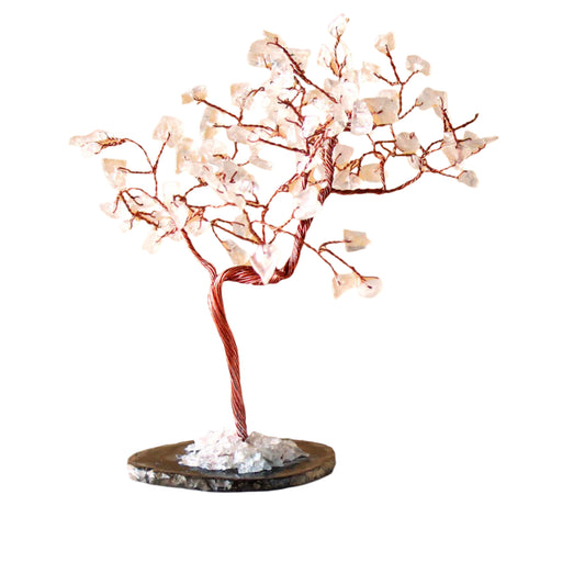 Lrg Gemstone Tree - Clear Quartz on Black Agate Base (100 stones)