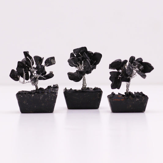 Mini Gemstone Trees On Orgonite Base - Black Agate (15 stones)