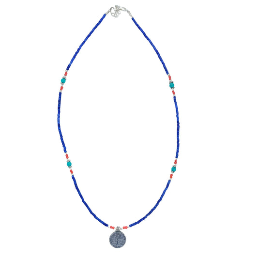 Nepalese Extra Fine Two Line Necklace - Blue Onyx & Lapis Pendant