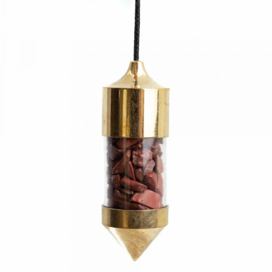 Red Jasper Gemstone Capsule Pendulum (Gold)
