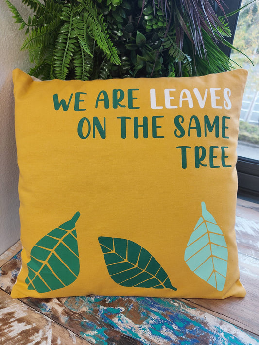 Printed Cotton Cushion Cover - We are Leaves - Yellow