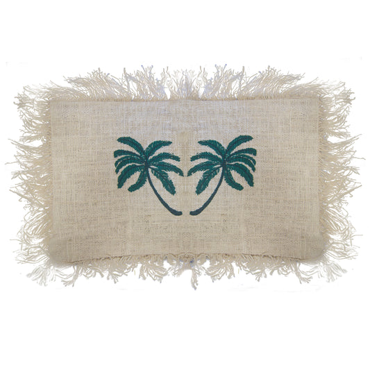 Linen Cushion 30x50cm Palm Tree with Fringe