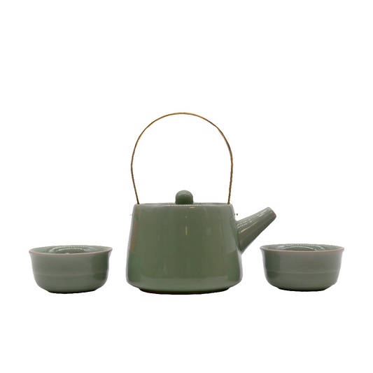 Herbal Black Glaze Teapot Set - Pot & Two Cups