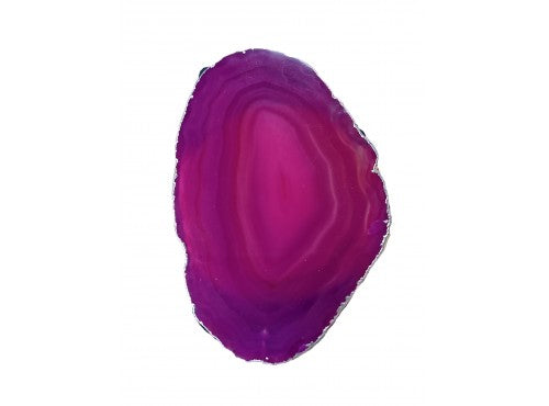 Agate is a very fine grained form of Quartz. It grows within volcanic lava bubbles known as geodes. Diamond saws are used to slice the Agate it is then ground to remove any imperfections then polished and dyed to enhance and display the beautiful natural banding within. Most Agate comes from Brazil.