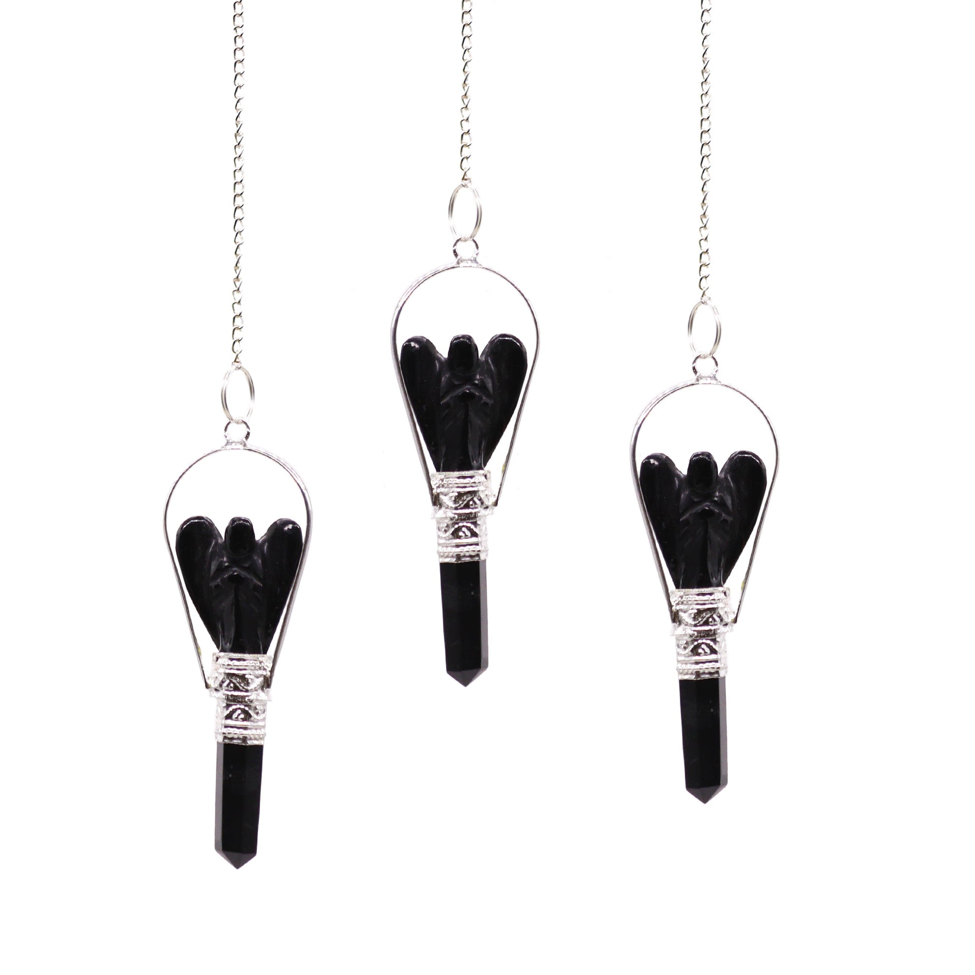 As a black agate crystal, this angel pendulum is believed to promote strength, stability, and balance. Its properties may aid in decision-making and boost self-confidence. Use it for divination, meditation, and healing practices. Channel your inner expert and bring harmony to your life with this beautiful pendulum and ring set.