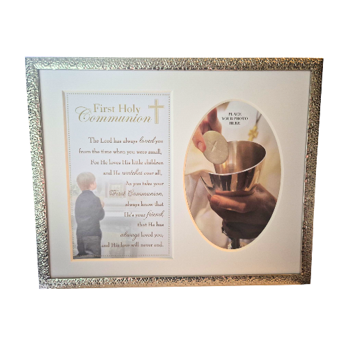 One side holds a standard 6x4 inch photo, perfect for capturing the moment of Communion. -