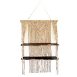 Introducing our exquisite Macramé Hanging Shelves, a perfect blend of functionality and boho-chic design. Handcrafted in Java by skilled artisans, these shelves are made from eco-friendly Albesia wood and durable macramé cotton ropes, ensuring both quality and sustainability.