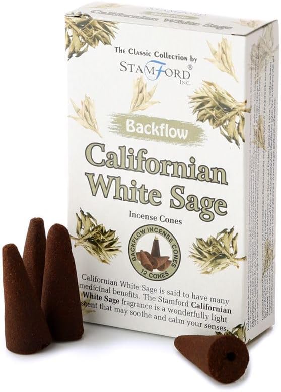 The Stamford Californian White Sage fragrance is a wonderfully light scent that may soothe and calm your senses. Made in India, premium quality from Stamford; These cones should be used in conjunction with a backflow incense burner (reflux burner)