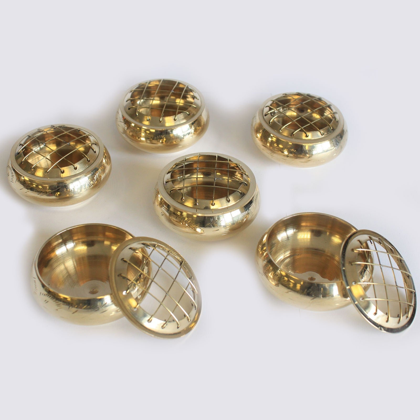These Brass Carved Charcoal Incense Burners are designed specifically for use with charcoal incense, providing a stable base for your incense burning experience. The natural beauty of brass combined with the practical design makes these holders an excellent choice for those who appreciate traditional incense rituals.