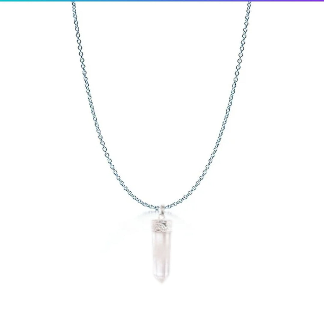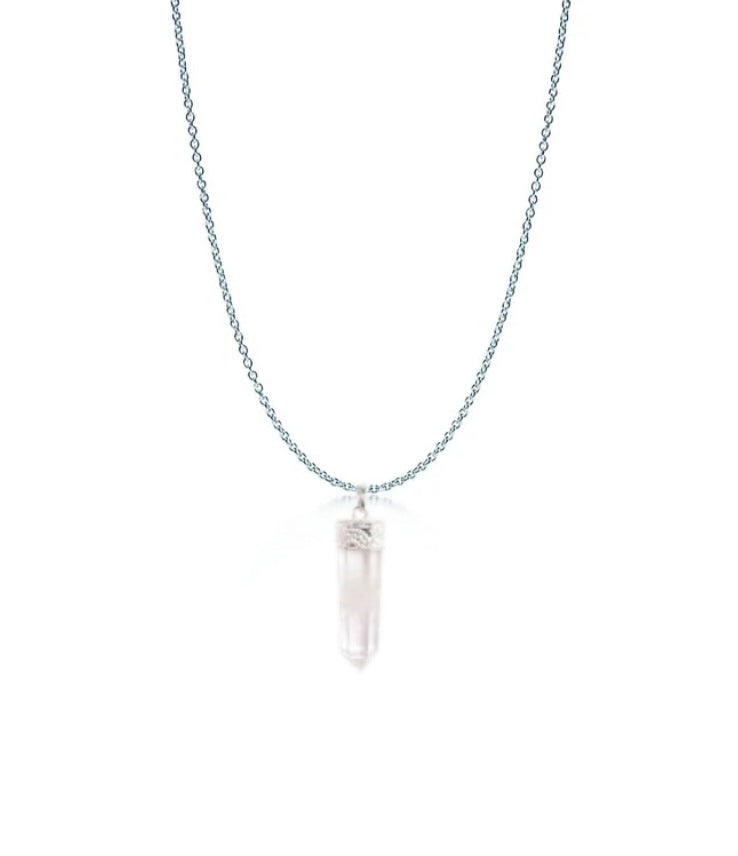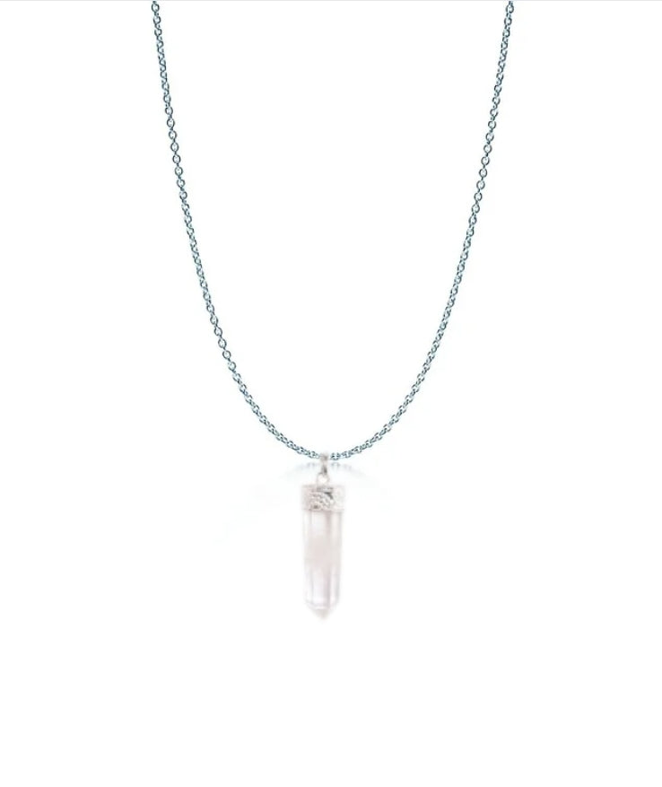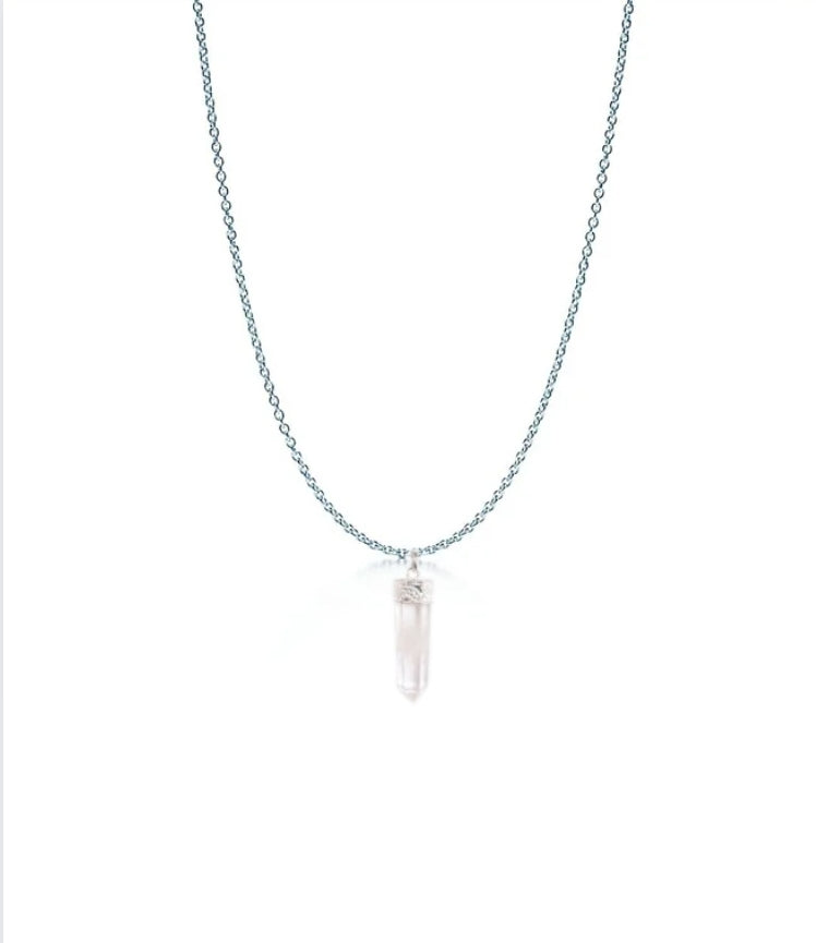 This Clear Quartz Point Pendant is perfect for any occasion. Featuring a clear quartz point with a silver Plated cap set on a durable stainless steel chain, this necklace is sure to make an impression. Each piece is unique, as natural gemstones are never exactly alike. Add a touch of elegance to any outfit with this unique pendant.