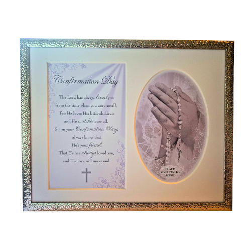 One side holds a standard 6x4 inch photo, perfect for capturing the moment of Confirmation. -