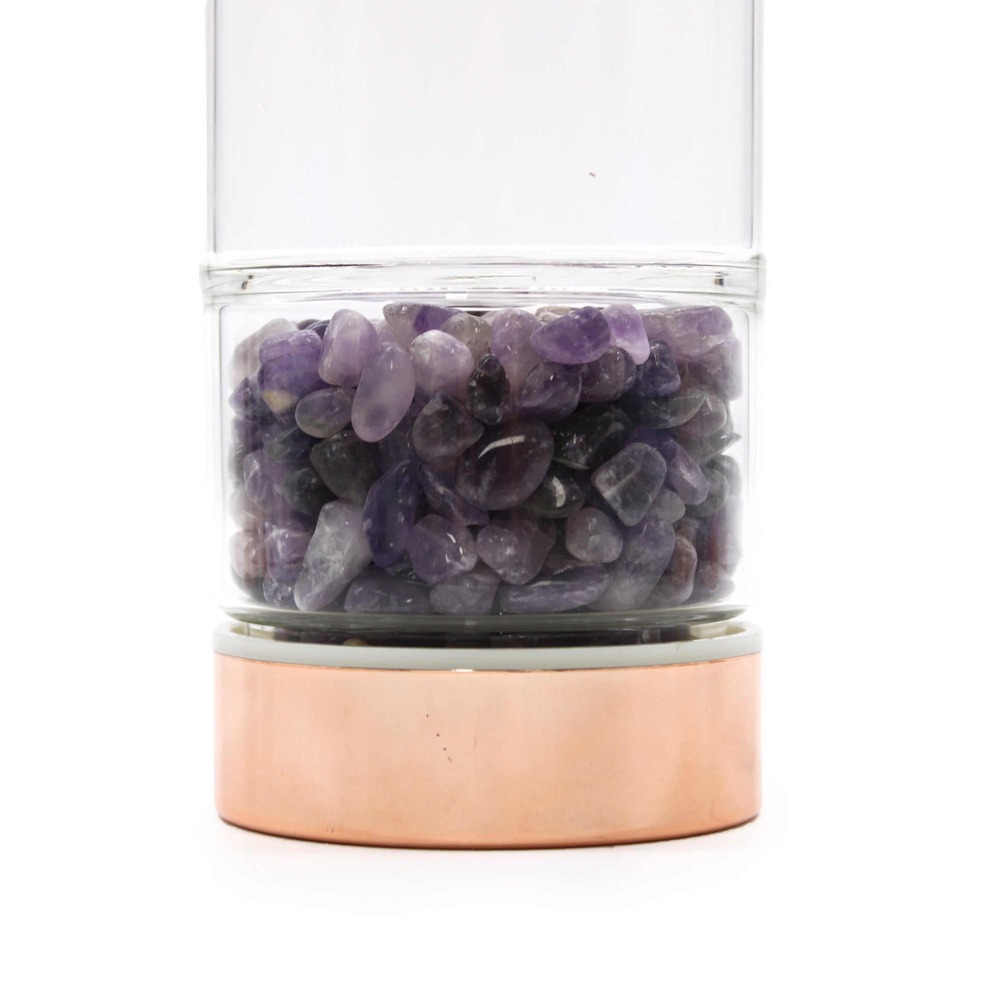 Crystal Glass Tea Infuser Bottle - Rose Gold - Amethyst