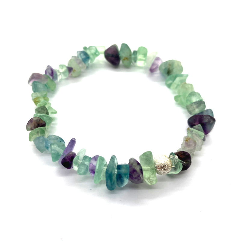 This Fluorite Crystal Chip Bracelet is perfect for grounding yourself and your energy. The fluorite crystal chips have a calming and stabilizing effect, helping you stay focused and present. Constructed from natural gemstones, this bracelet is an ideal way to incorporate the spiritual effects of fluorite into your everyday life.