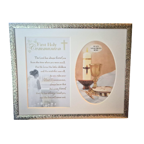 One side holds a standard 6x4 inch photo, perfect for capturing the moment of Communion. -