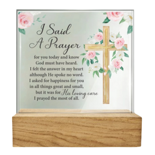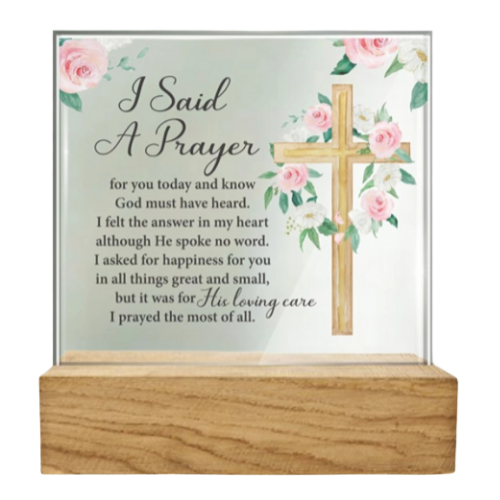 Share a heartfelt message with someone special with this beautiful "I Said A Prayer" Glass Plaque. Featuring an elegant design with delicate floral accents and a meaningful prayer, this plaque is a touching way to express love, care, and blessings.