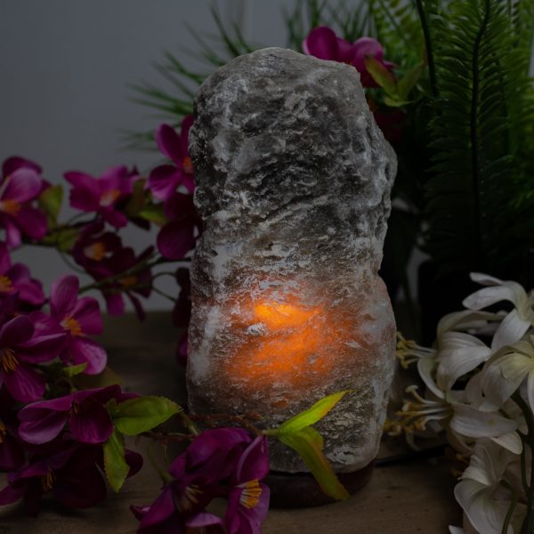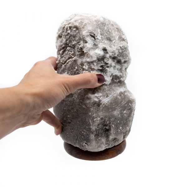 Salt Stone lamp 3-4 kilo, comes with cable and lamp. Colour may vary from light to dark grey.