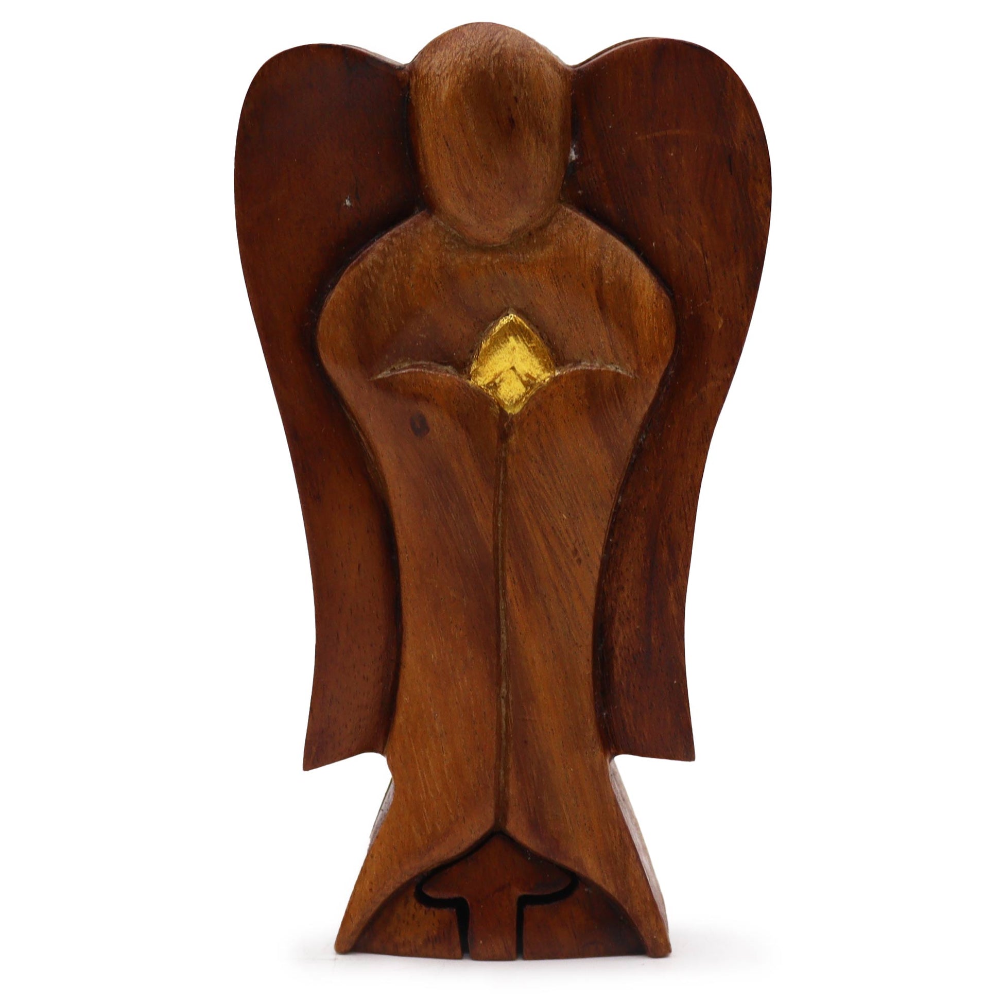 Hati-Hati Angel Magic Box - Friendship - 14 cm is hand-carved from sustainable Suar wood in Indonesian mountain villages. This hardwood has a rich tradition in crafting beautiful and sacred pieces.