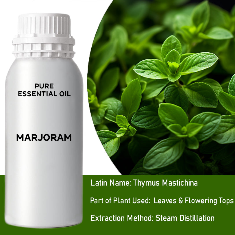 Marjoram Essential Oil is steam distilled from the Thymus mastichina plant, which has a hairy stem, oval leaves and little whitish flowers in clusters. The entire plant exudes a strong aroma. This plant is actually wild growing thyme, but is known as Spanish Wild Marjoram. It belongs to the lamiaceae family of Spain and is not the same as sweet or French Marjoram; neither is it oregano, which is also called wild marjoram.