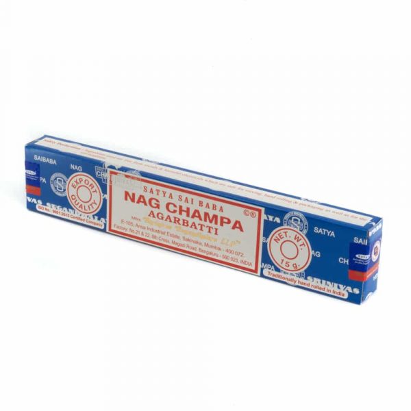 Original Handrolled Satya Sai Baba Nagchampa Agarbatti manufactured in Bangalore and Mumbai by Shrinivas Sugandhalaya LLP is a combination of Champa flower, floral, Oriental-Spicy aroma with a base note of wood and patchouli. It is a reminiscent of Jasmine or magnolia flowers. The Preparation consists of formulation of masala mix using natural extracts in the form of dough concerning the ancient method and is rolled by hand on the bamboo sticks.