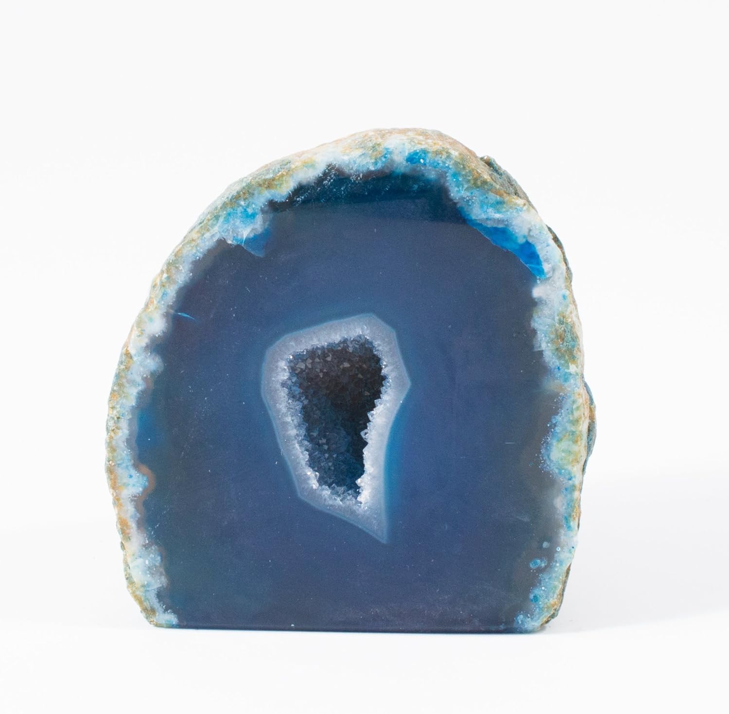 Agate is a very fine-grained form of Quartz. It grows within volcanic lava bubbles known as geodes. Diamond saws are used to slice the Agate it is then ground to remove any imperfections then polished and dyed to enhance and display the beautiful natural banding within.