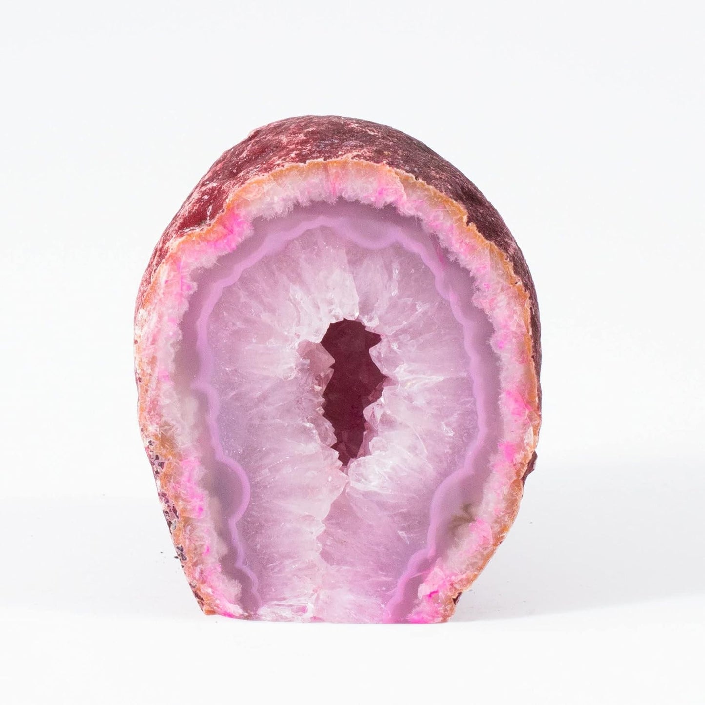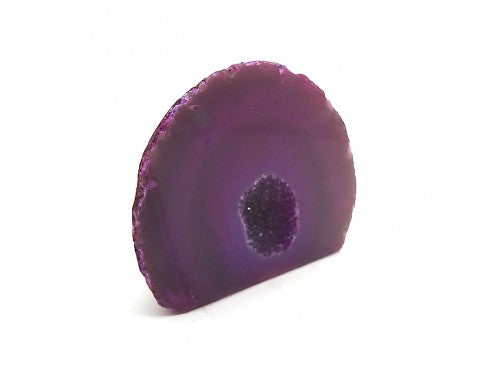 Agate is a very fine-grained form of Quartz. It grows within volcanic lava bubbles known as geodes. Diamond saws are used to slice the Agate it is then ground to remove any imperfections then polished and dyed to enhance and display the beautiful natural banding within.