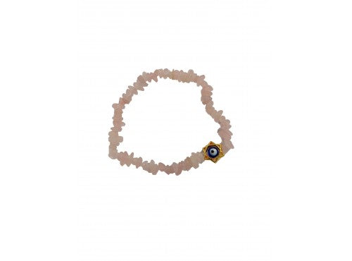 Rose Quartz Chip Bracelet with Gold Star & Turkish Eye