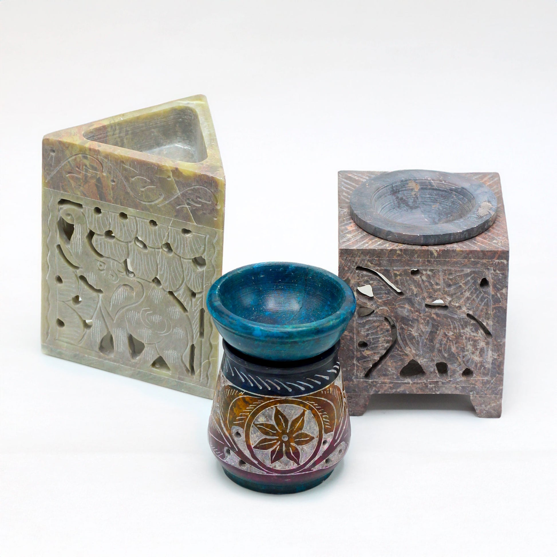 Small Coloured Soapstone Oil Burner 8cm - Om & Elephant