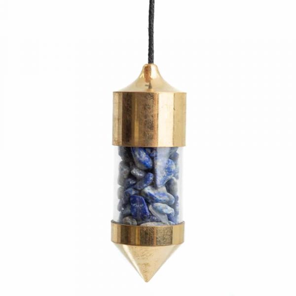 This beautiful gold capsule pendulum is an ideal tool for divination and meditation, crafted with chips of Sodalite gemstone.