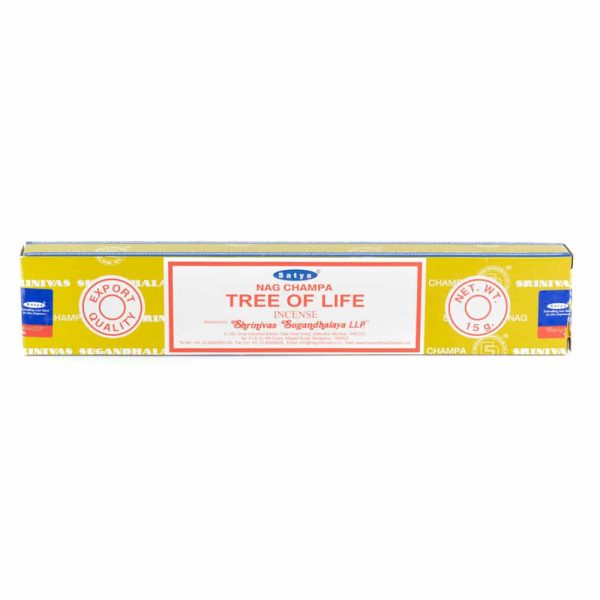 Satya Tree Of Life Incense is a scent of Green Foliage with warm, woody Cedarwood & Junniper which transmit the fragrance of humid air. This blend of fragrances creates an atmosphere of relaxation, perfect for individuals seeking inner peace and an uplifting and calming environment.
