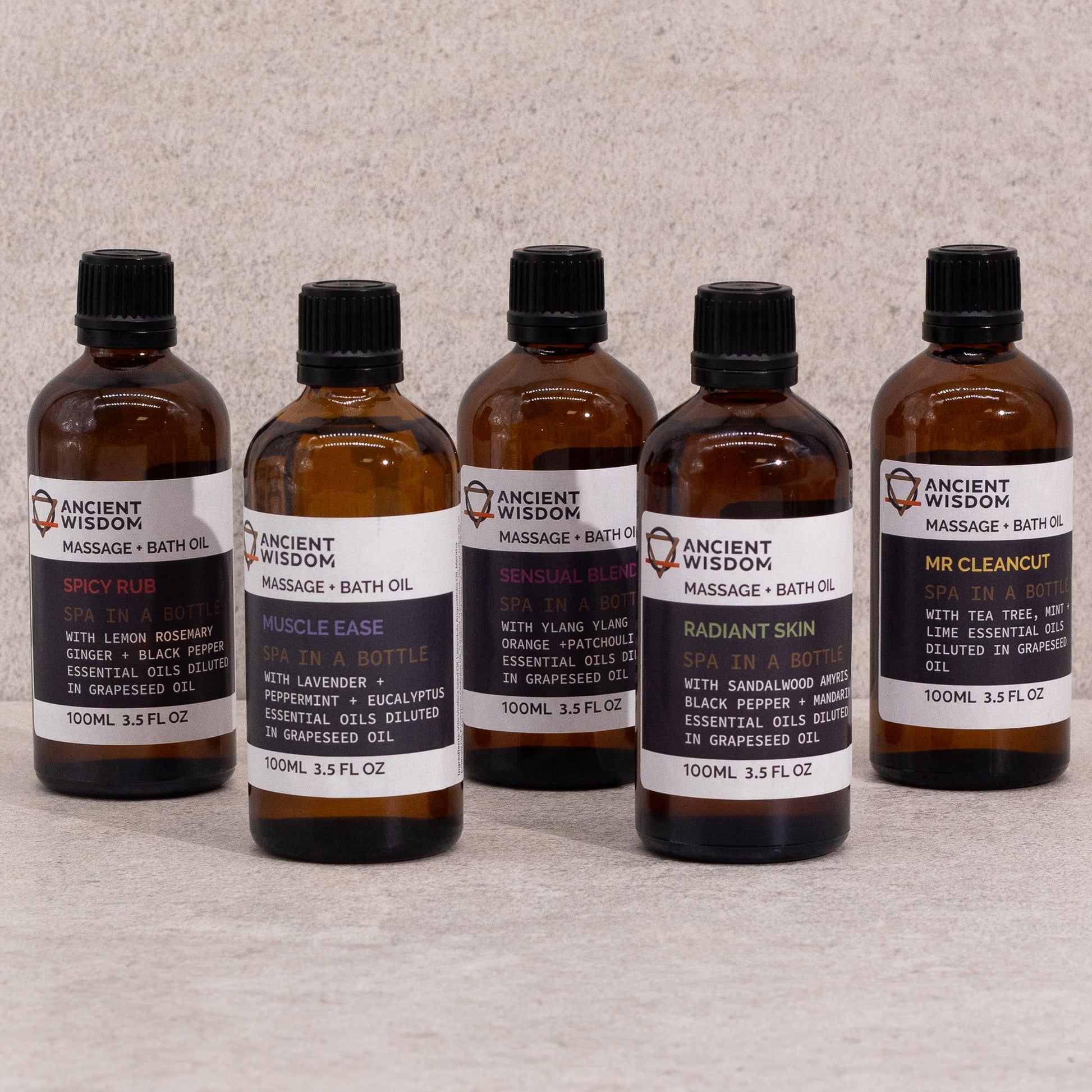 Wellbeing Massage Oil is made with worlds known Ancient Wisdom quality May Chang and Ylang Ylang Essential Oils and Pure Grapeseed Oil.