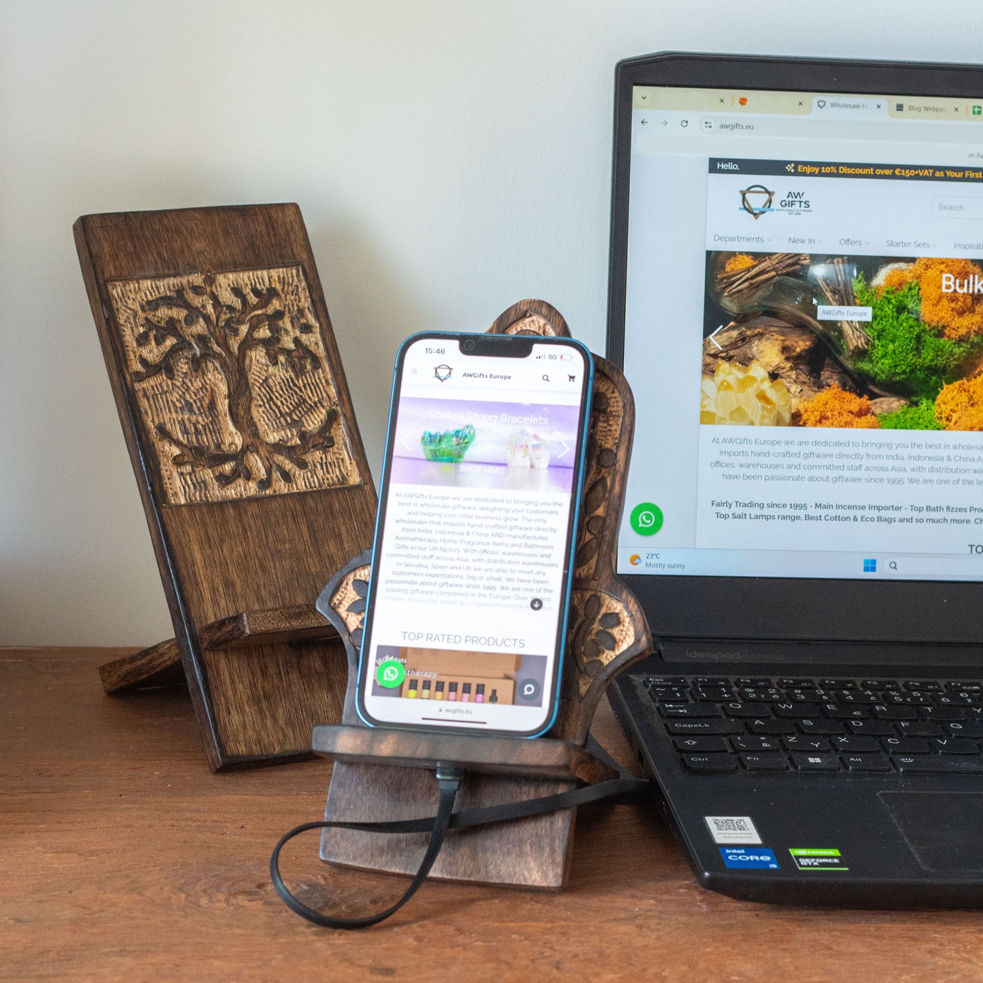 Wooden Carved Phone Stands - Tree of Life 20x9.5cm